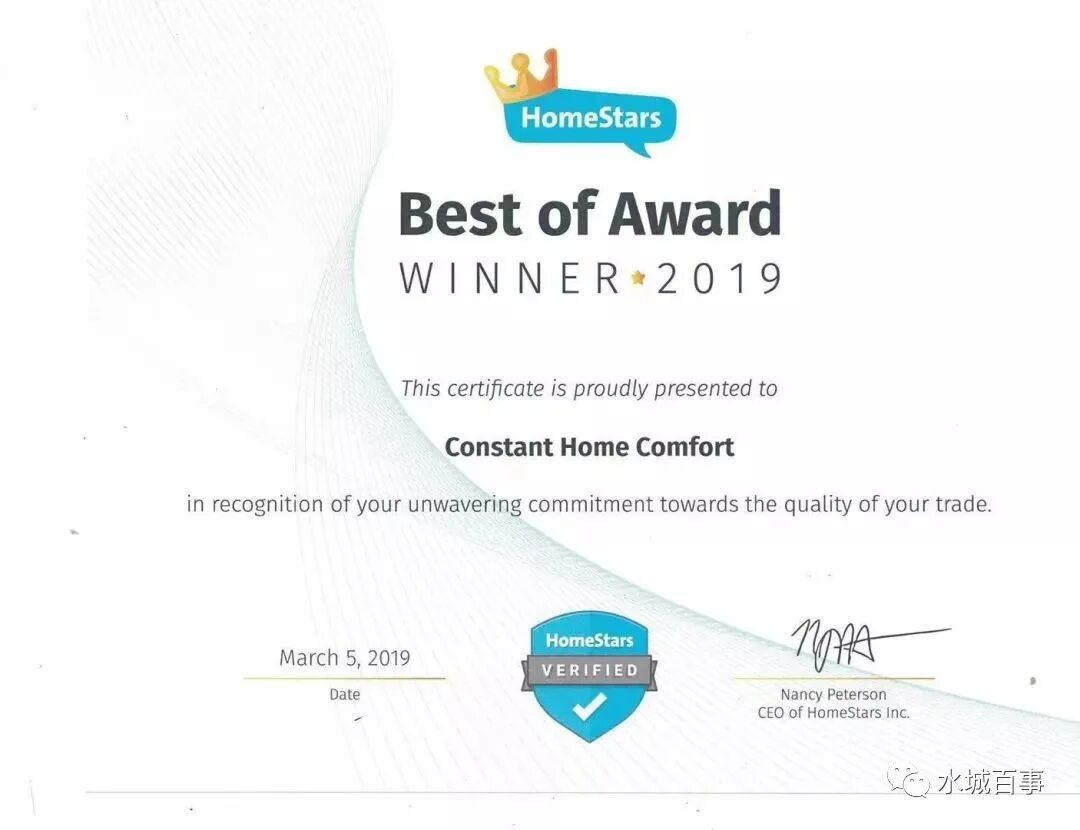 本公司在Home Star客户评价权威网站,被评选为Best of Award WINNER 2019(2019年度最佳公司)要知道Home Star是认可度最高,绝不允许任何作假的客户评价平台。客户的满意就是我们最大的动力。